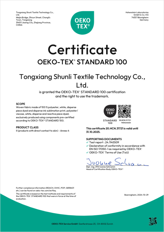 Lựa chọn Vải vải in lót Để thêm một lớp hình ảnh độc đáo vào quần áo cao cấp đã trở thành một xu hướng quan trọng trong thiết kế thời trang hiện đại. Với nhu cầu ngày càng tăng về chi tiết quần áo và cá nhân hóa của người tiêu dùng, vải vải in đã dần trở thành một trong những loại vải ưa thích cho quần áo cao cấp với thiết kế hoa văn tinh tế, thoải mái mặc trải nghiệm và bảo vệ môi trường. Là một công ty đã tham gia sâu vào ngành dệt may trong nhiều năm, Tongxiang Shunli Technology Co., Ltd. đã đáp ứng nhu cầu của khách hàng toàn cầu trong lĩnh vực lót quần áo với công nghệ lót in sáng tạo và các sản phẩm chất lượng cao, đặc biệt là trong việc áp dụng quần áo cao cấp.